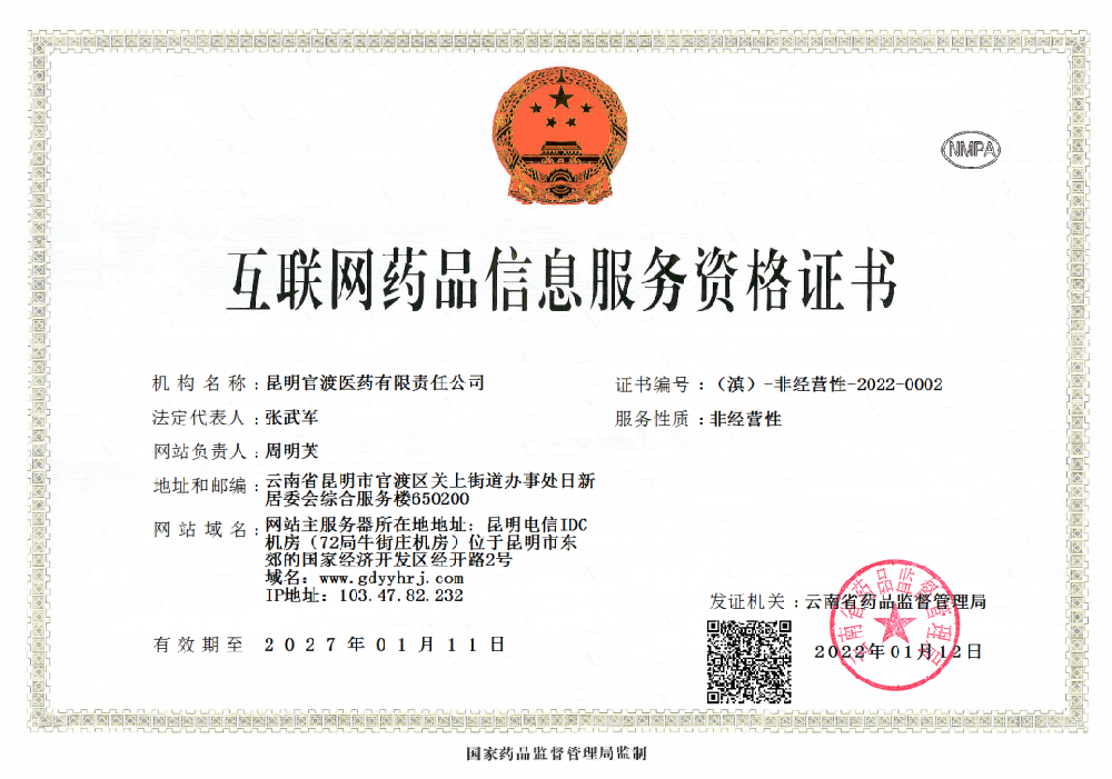 互聯(lián)網(wǎng)藥品信息服務(wù)資格證書(shū)